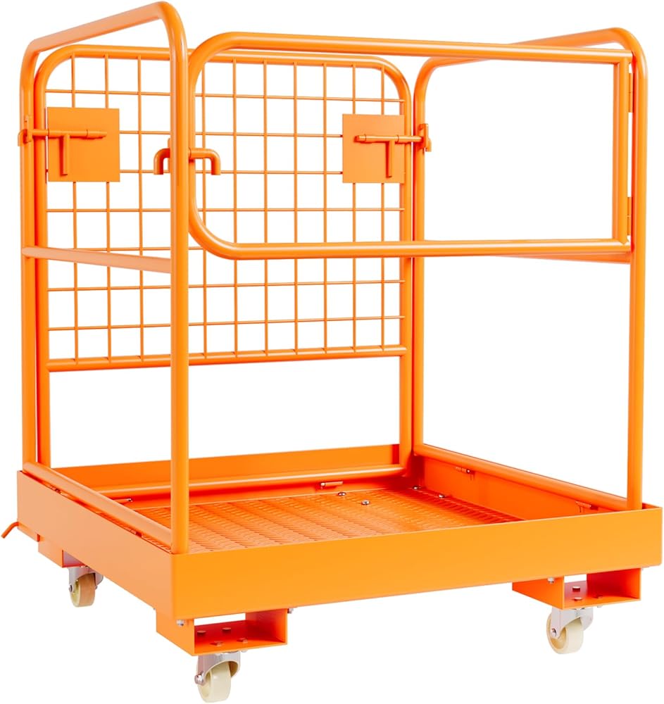SECURITY PROTECTION DESIGN: Elevate safety with our forklift safety cage featuring anti-slip patterns, sturdy mesh safety door, and guardrail for stability. Ensure safety during forklift operations with this top-notch security solution.