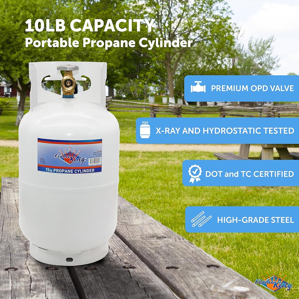 Flame King 10LB Steel Propane Tank Cylinder with Type 1 Overflow Protection Device Valve, Great for Camping, Fire Pits, Heaters, Grills, Overlanding, White
