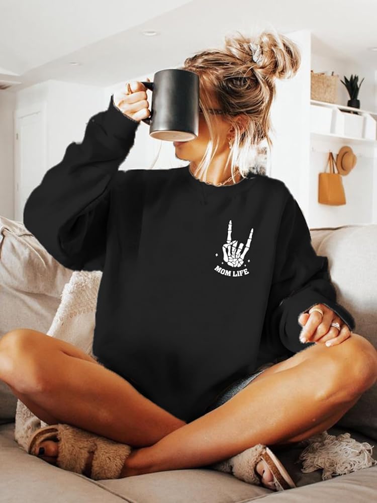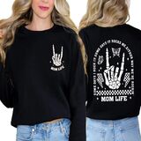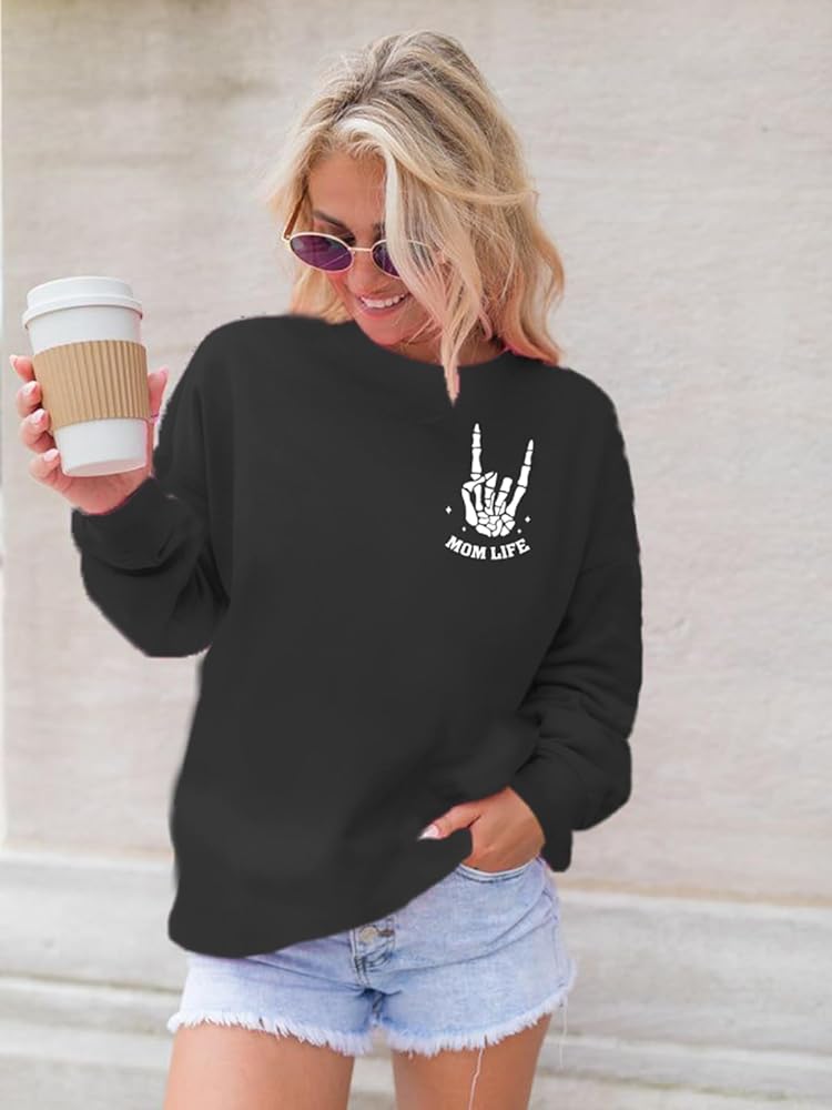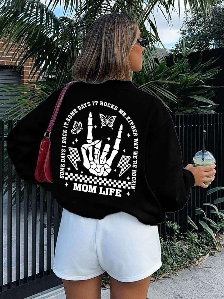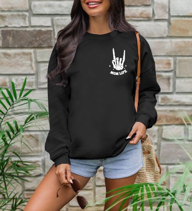 Skeleton Graphic Sweatshirts -- Rock 'n' Roll, the bold skeleton print is a nod to the rebellious spirit of rock music. The mama halloween sweatshirt intricate design screams rockstar chic, perfect for moms who live life to the full