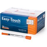 Easy Touch 27 Gauge U-100 Insulin Syringes (27G 1cc 1/2") with 1/2" Long Needle, 1cc (100 Unit Capacity), Bold Markings for Accurate Dosing, Disposable, Box of 100