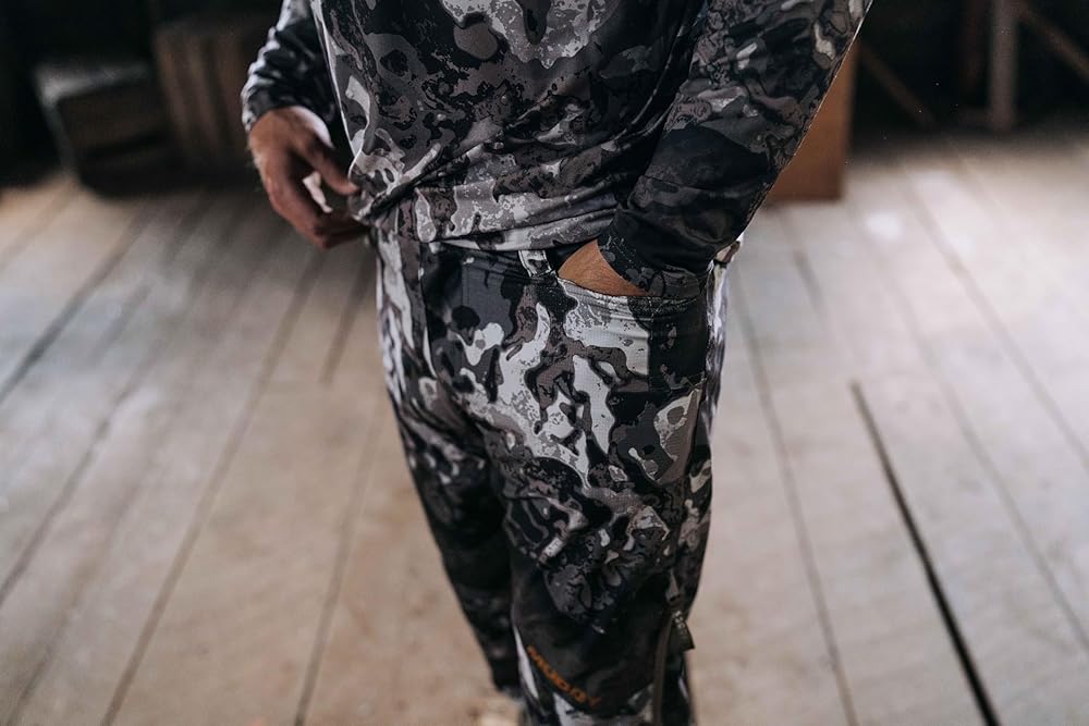 These hunting pants are made from 100% polyester, ensuring a flexible fit and unrestricted movement, especially with articulated knees. The silicone waistband gripper keeps the pants securely in place, even when layered. For added convenience, side vent zippers provide quick ventilation, and tapered legs offer a streamlined fit that enhances mobility. Additionally, a knife reinforcement pocket and two rear zippered pockets help secure tools and valuables. The pants are suitable for temperatures ranging from 40°F to 75°F with appropriate layering.