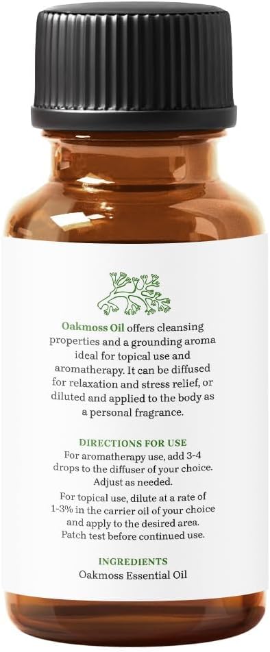 Experience a potent blend of tranquility and wellness with Oakmoss Essential Oil. Steam-distilled from a nutrient-rich lichen, this dark green oil exudes an earthy, woody, musky aroma. Known for its antiseptic properties, it offers a rich, grounding scent, enhancing perfumes, colognes, and aiding your aromatherapy routine. Diffuse to promote relaxation, relieve stress, or blend with helichrysum, chamomile, or petitgrain essential oils for varied scents. Rich in evernyl, atranol, and chloroatranol, Oakmoss Oil is a versatile addition to your wellness routine, protecting skin and soothing minor irritations. Journey into holistic well-being, carried on the calming notes of Oakmoss.