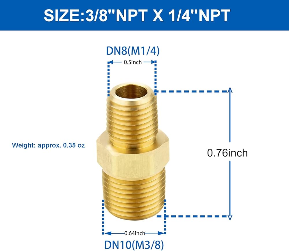 STANDARD - Male NPT threads for connecting to female threaded pipes, this premium brass pipe fitting can be used to connect various pipes, such as air pipe, fuel pipe, water pipe as well as air tools.