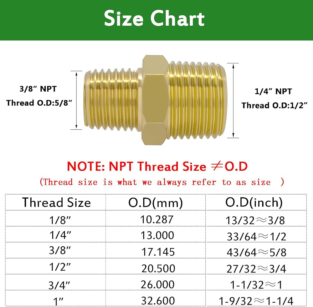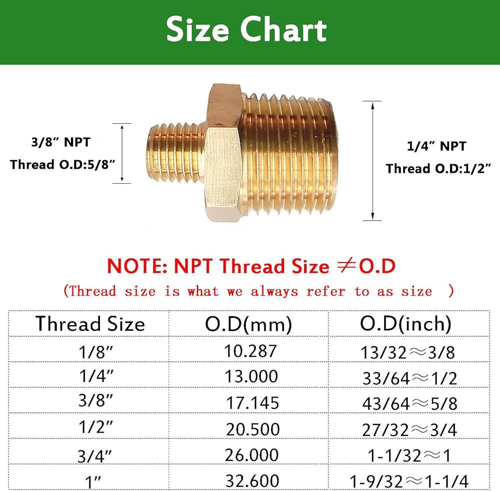 PLEASE NOTE —— NPT thread size does not actual diameter, it is only nominal pipe size