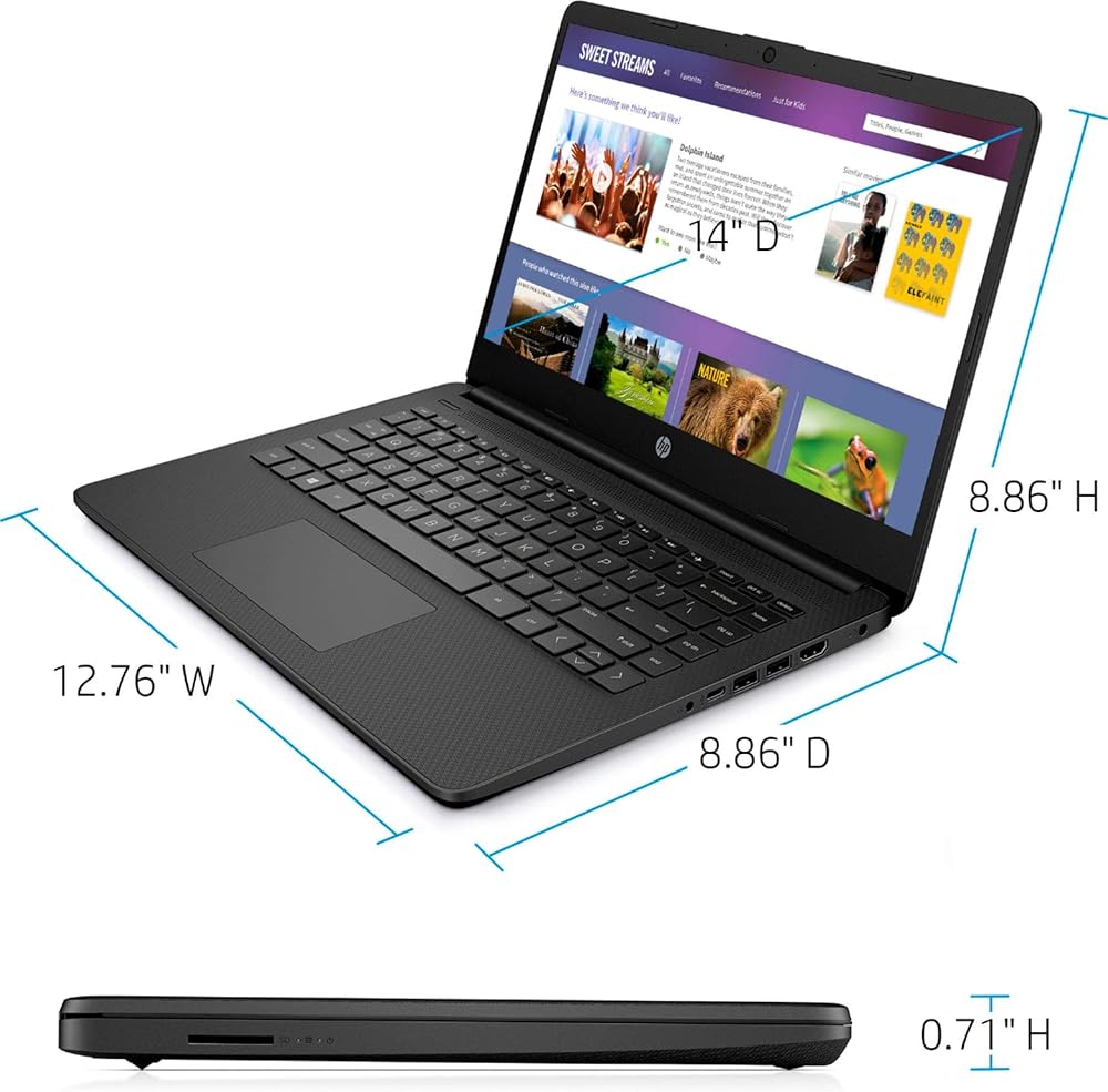 2022 Newest HP Stream 14" HD Laptop, Intel Celeron N4020(up to 2.8GHz), 8GB RAM, 128GB Space(64GB eMMC+64GB Card), 1-Year Office 365, WiFi, HDMI, USB-C, Webcam, Bluetooth, Windows 11S, Black+JVQ MP