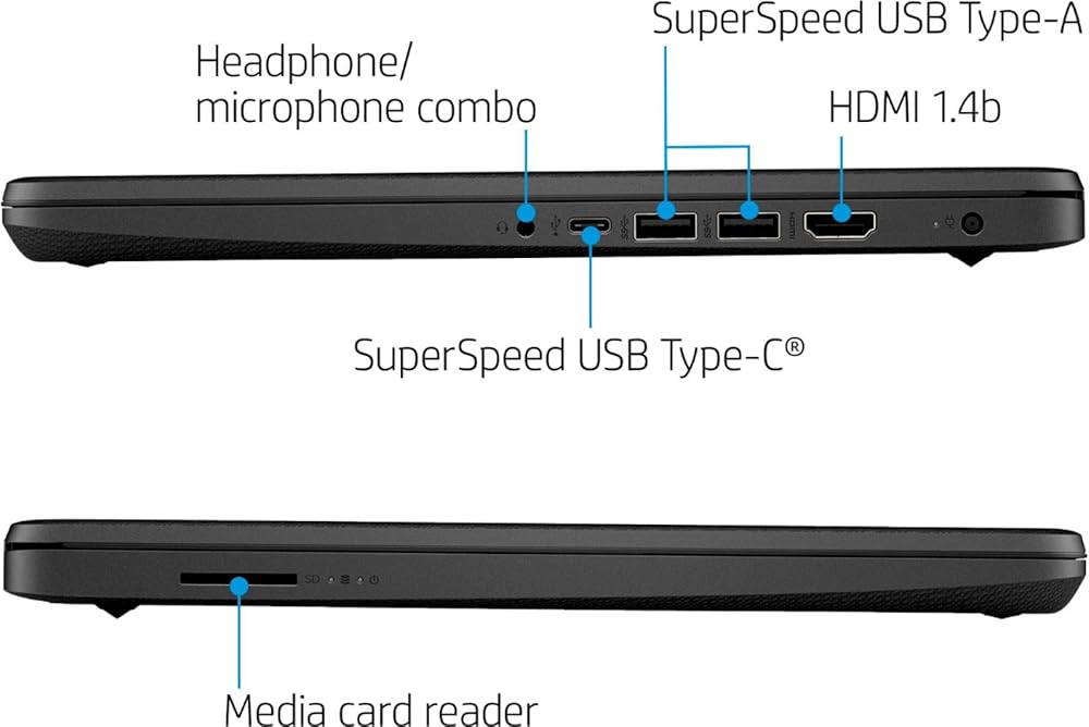 • 【14" Diagonal HD Display】14" diagonal HD anti-glare micro-edge, 220 nits, 45% NTSC (1366x768); Intel UHD Graphics 600,on-processor Graphics with Shared video Memory provide everyday image quality for Internet use, basic photo editing and casual gaming.
