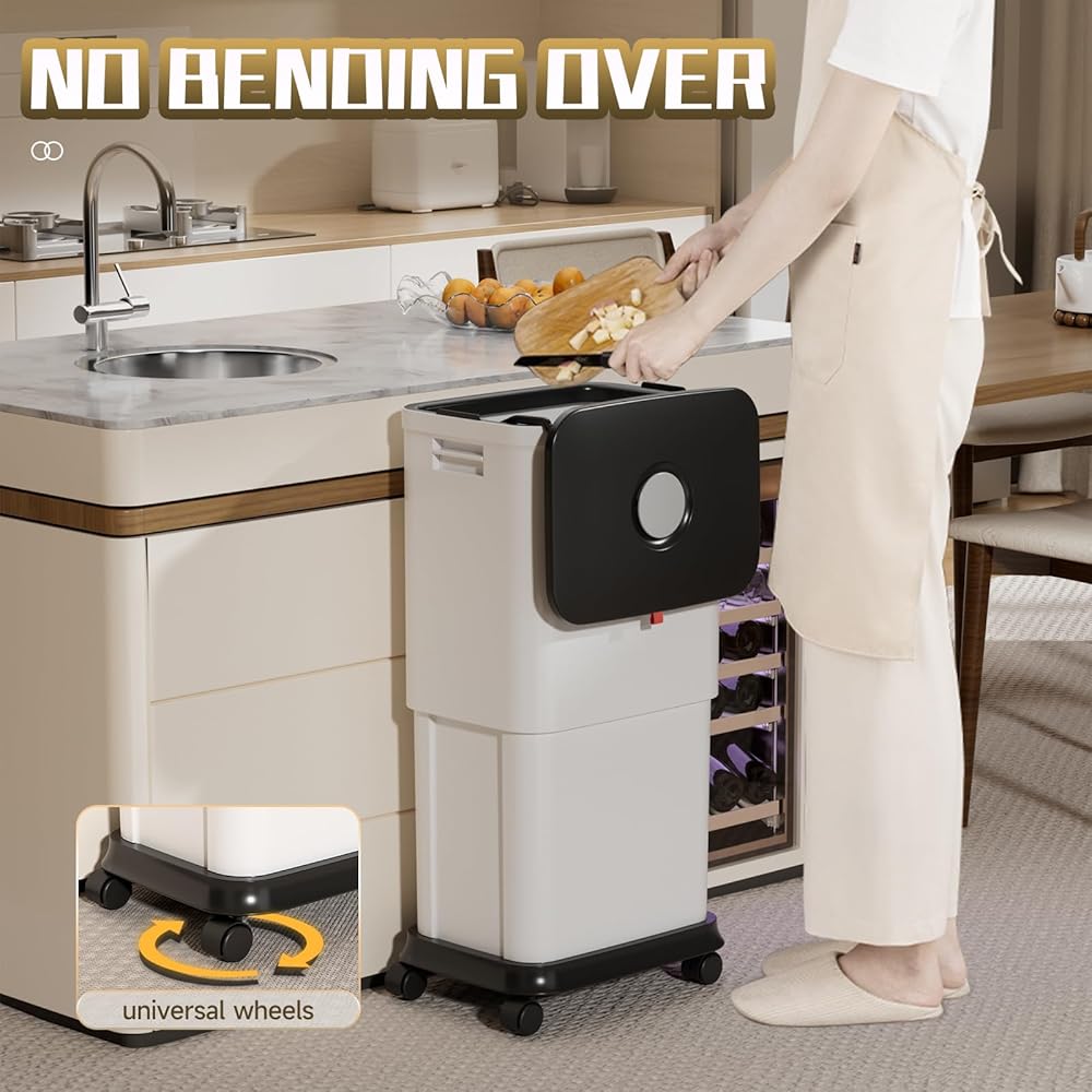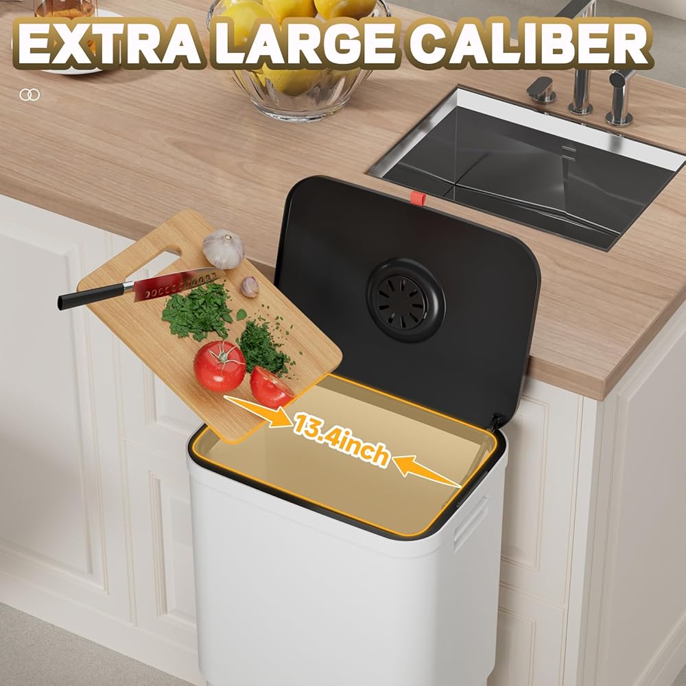 No Bending Over - this kitchen garbage can can be adjusted in height from 16.9 inches to 28.4 inches, allowing you to avoid bending over when throwing garbage. Meanwhile, its capacity will increase from 20 Liters/5.3 Gallons to 45 Liters/12 Gallons, containing more garbage