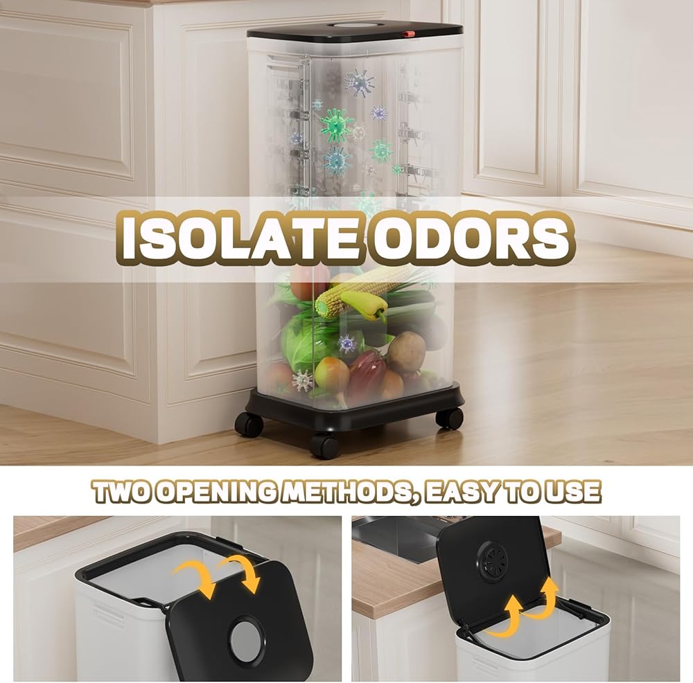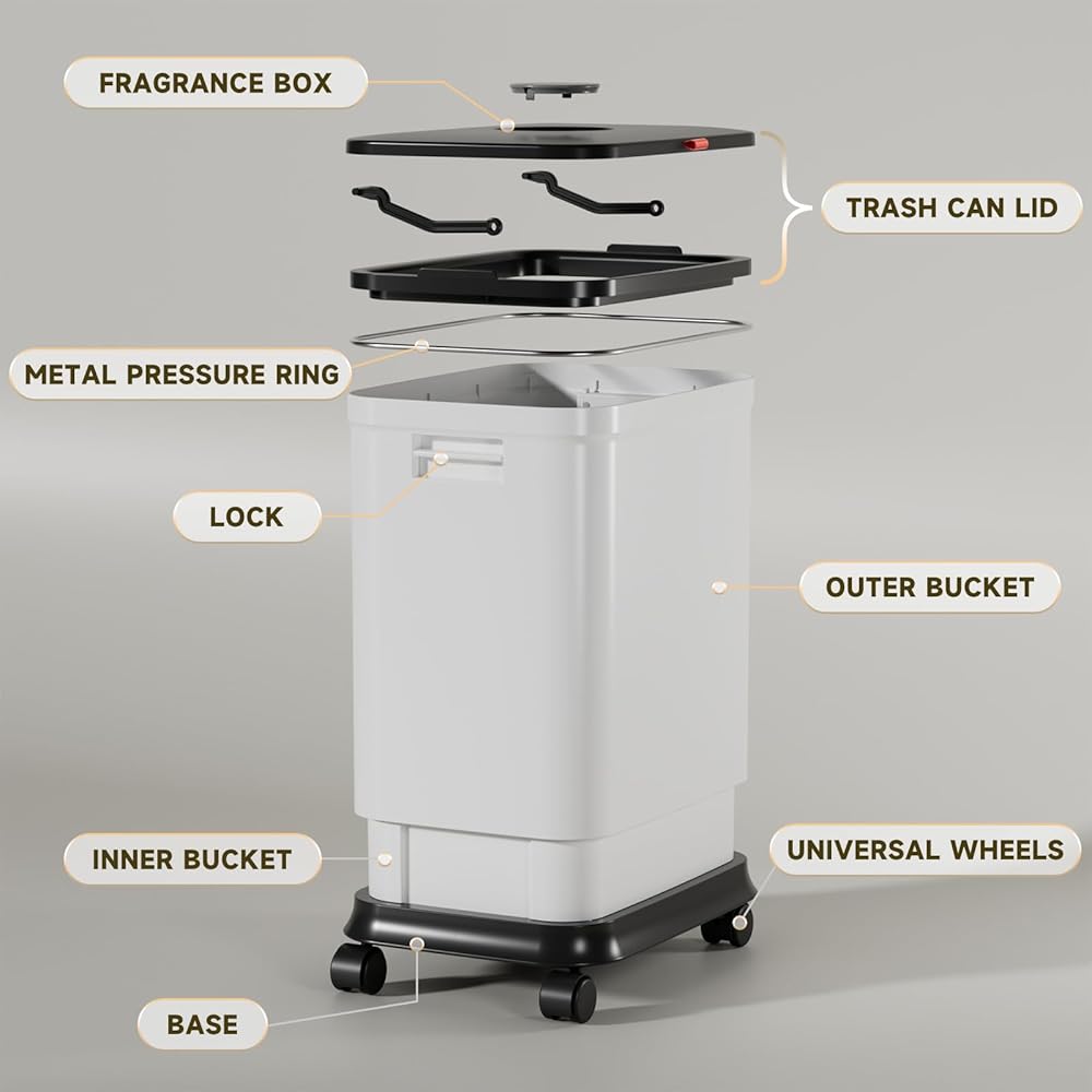 Isolate Odors - lidded garbage container lock unpleasant smells inside, keeping your home's air fresh. There is a box on the cover of trash can where you can put fragrance in it