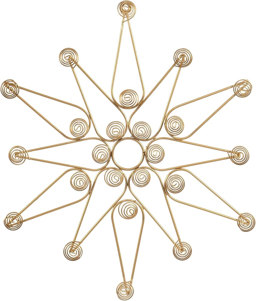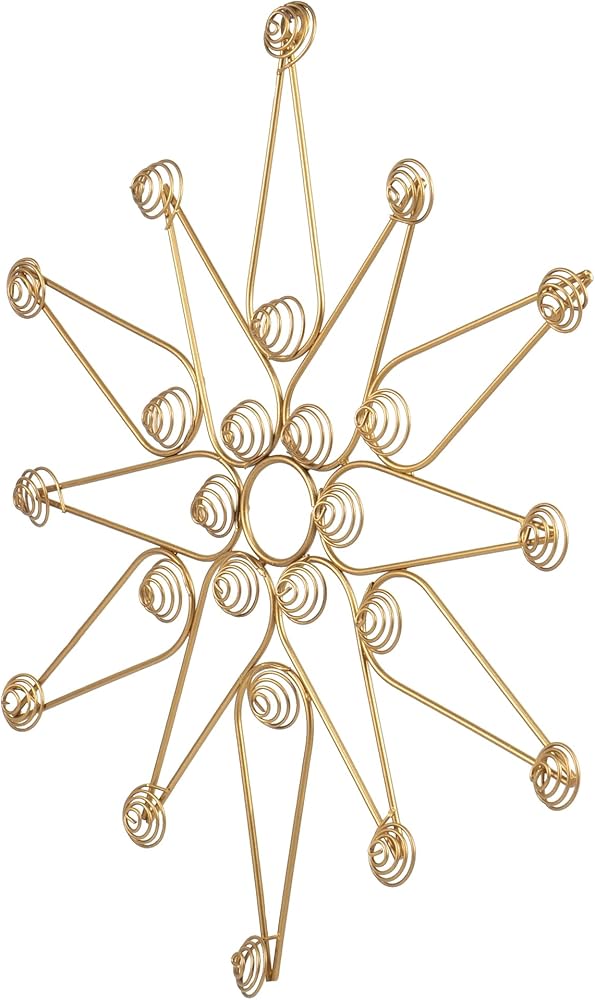 The star design gives the holder a festive feel and makes it an excellent decoration for the holiday season. The metal wire is sturdy and durable, ensuring that the holder can hold multiple photos and cards without losing its shape or structure. Overall, the combination of the golden finish and minimalist design creates a beautiful and functional piece that is perfect for any home decor style. Whether you prefer a modern, minimalist aesthetic or a more traditional look, this holder will add a touch of elegance and sophistication to any room. With its easy-to-use keyhole design, this wall display can be hung in just a few minutes, allowing you to enjoy your festive decor without any hassle (mounting hardware is not included).