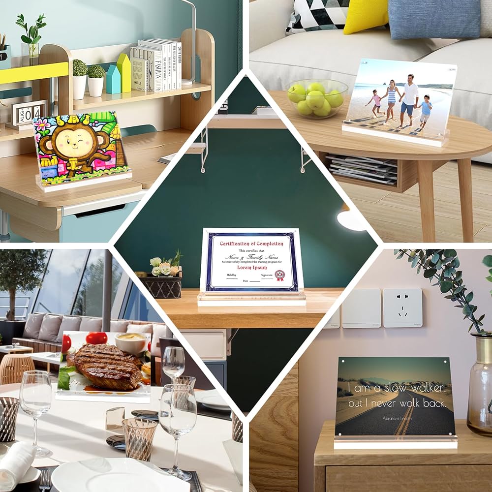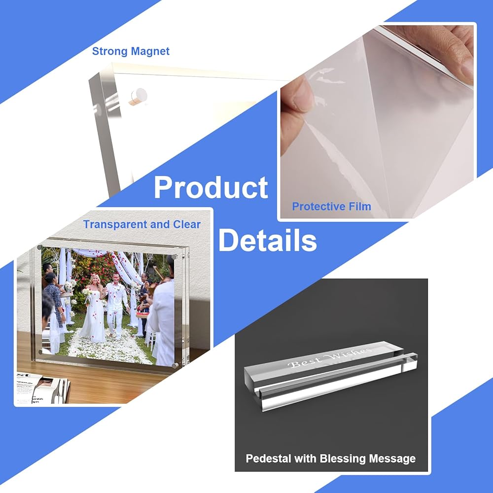 Ultra-Clear Double-Sided Display:The transparent effect of acrylic picture frames is very amazing craftsmanship allowing you to see colors and images with superb clarity. Use it in a full or partial screen to create a floating effect. You can easily display 2 different photos of both sides!