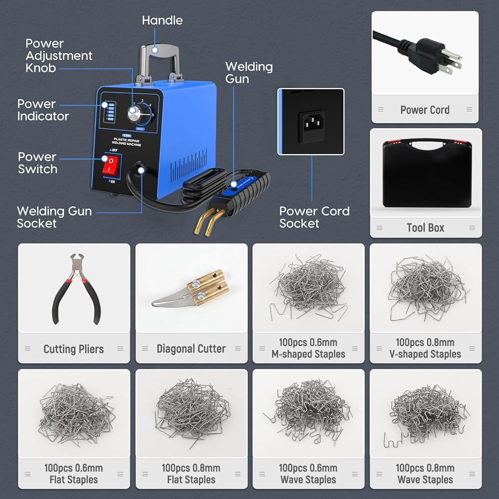 Plastic Welding Kit,Plastic Repair Machine with Power Adjustment Function & 600pcs Hot Staples for Bumper Repair,DIY Projects and other Plastic Welder.