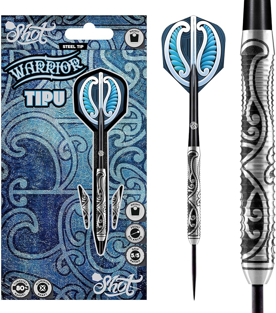 Shot Darts Steel Tip, Warrior Tipu (21g/23g/25g), 80% Tungsten, Front Weighted with Secure Grip for Maximum Aerodynamics, Professional Dart Set and Flights Made in New Zealand, Metal Tip Bar Darts