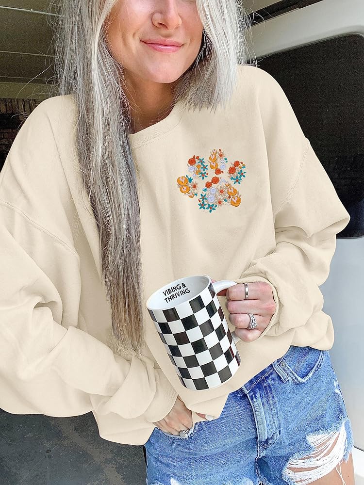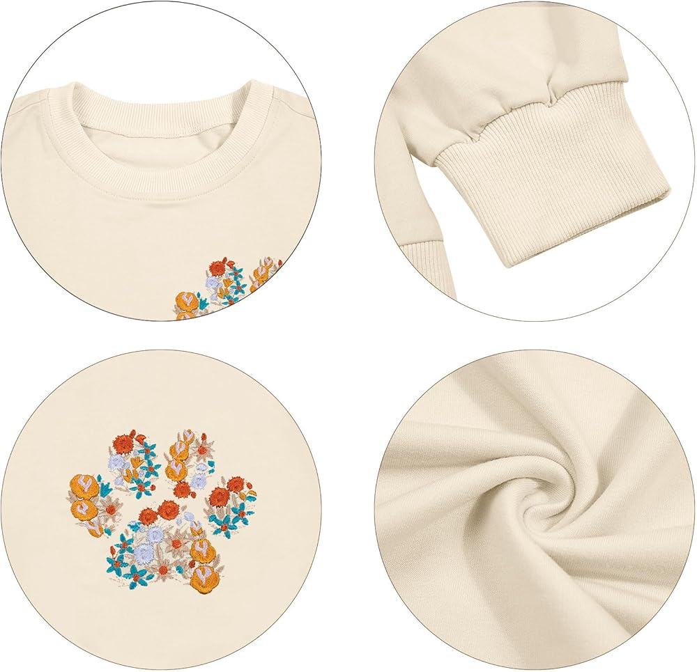 DOG SWEATSHIRT: Introducing our dog lover sweatshirts for women, the perfect addition to any dog mom's wardrobe! Show your love for your furry best friend with our beautifully embroidered dog sweatshirt, adorned with a sweet floral paw print design.