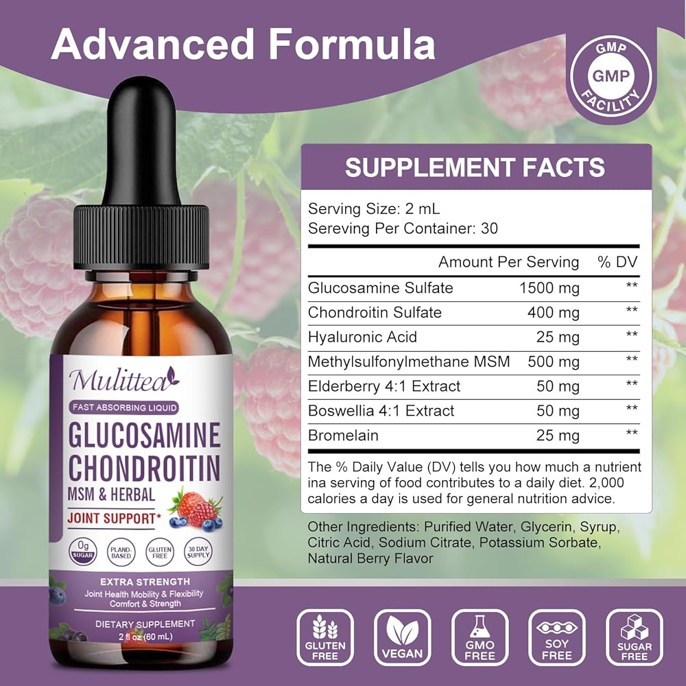SAFE & TRUSTED - Our premium joint supplements are safe and trusted, suitable for both men and women. Take 2ML a day./twice per day(1ML at a time). MULITTEA is committed to providing natural supplements focused on enhancing customers' physical health. Produced in a facility compliant with the highest standards, our supplements contain no artificial colors or preservatives and are gluten-free.