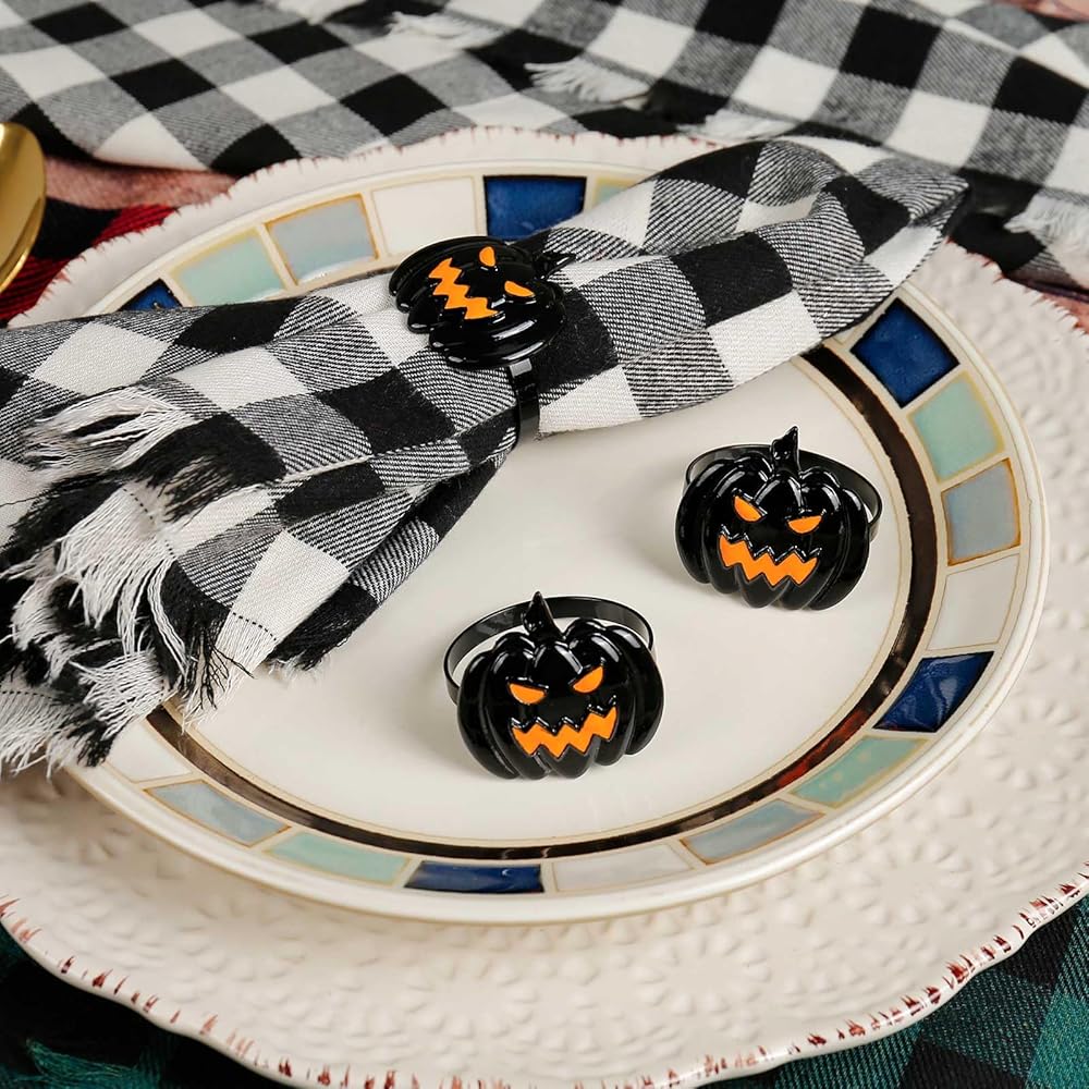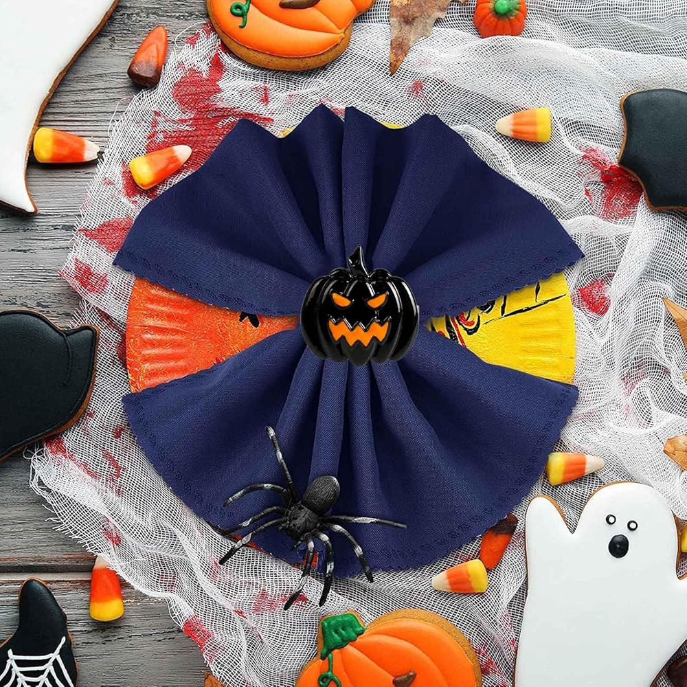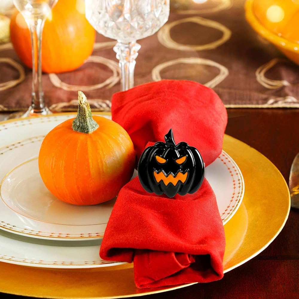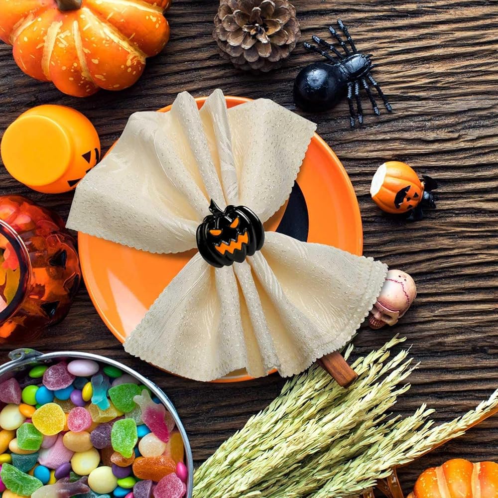 Halloween Napkin Rings Set of 6, Black Ghost Pumpkin Napkin Rings Holders Metal Buckle Serviette for Halloween, Horror Theme Party, Autumn Holiday, Dining Table Decoration