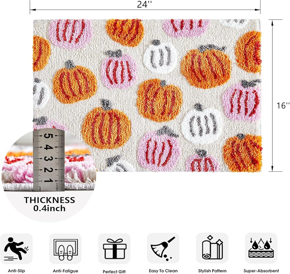 0.4-Inch Fluffy Microfiber Pile -- Experience unmatched softness and comfort with our fun fall bathroom rugs made of 1.2-inch ultra soft chenille pile. Thicker than