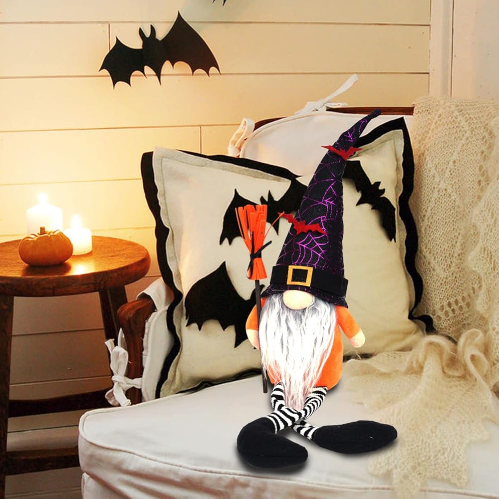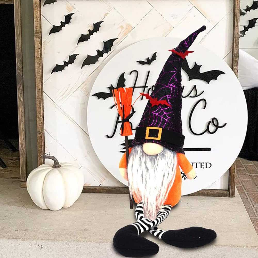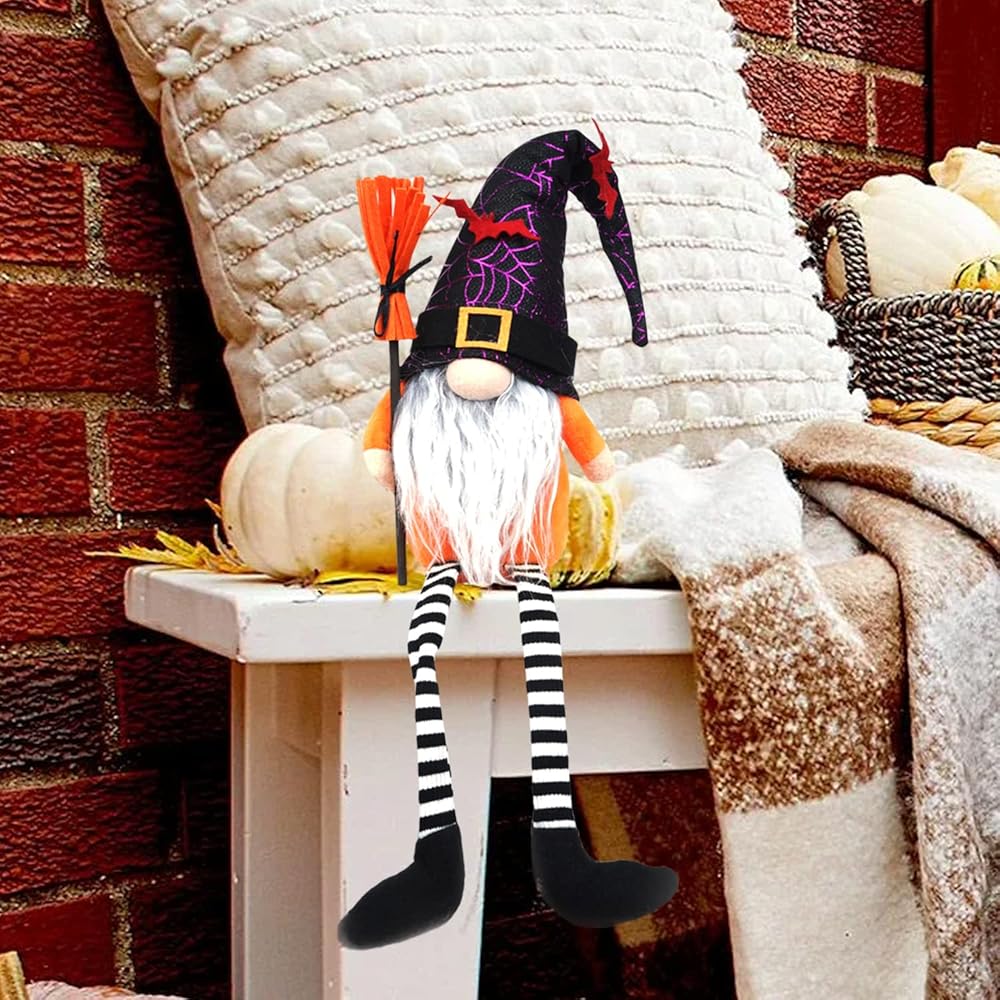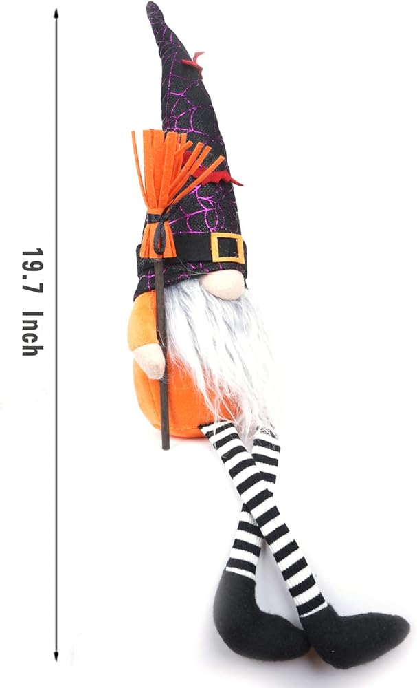 Perfect Size Home Decor: With the perfect size design, 18.1 inches high from the hat top to bottom, with 5.1 inch long leg 4 inch and 5.12inches wide.These Halloween decor gnomes are ideal for spreading holiday spirit in the house, you can put it on your kitchen shelf, coffee bar,dining table,fireplace, mantle, table, window, shelf, perfect size to fit anywhere!And these Halloween witch gnome will stand out from your home decor