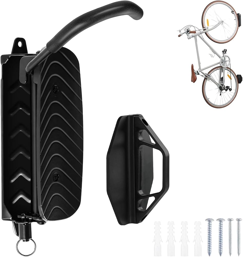 Stable and durable: The bike wall mount is made of high-quality carbon steel, stable, durable, easy to hang and robust. NOTE: Please pull the hanging ring down before turning the bike
