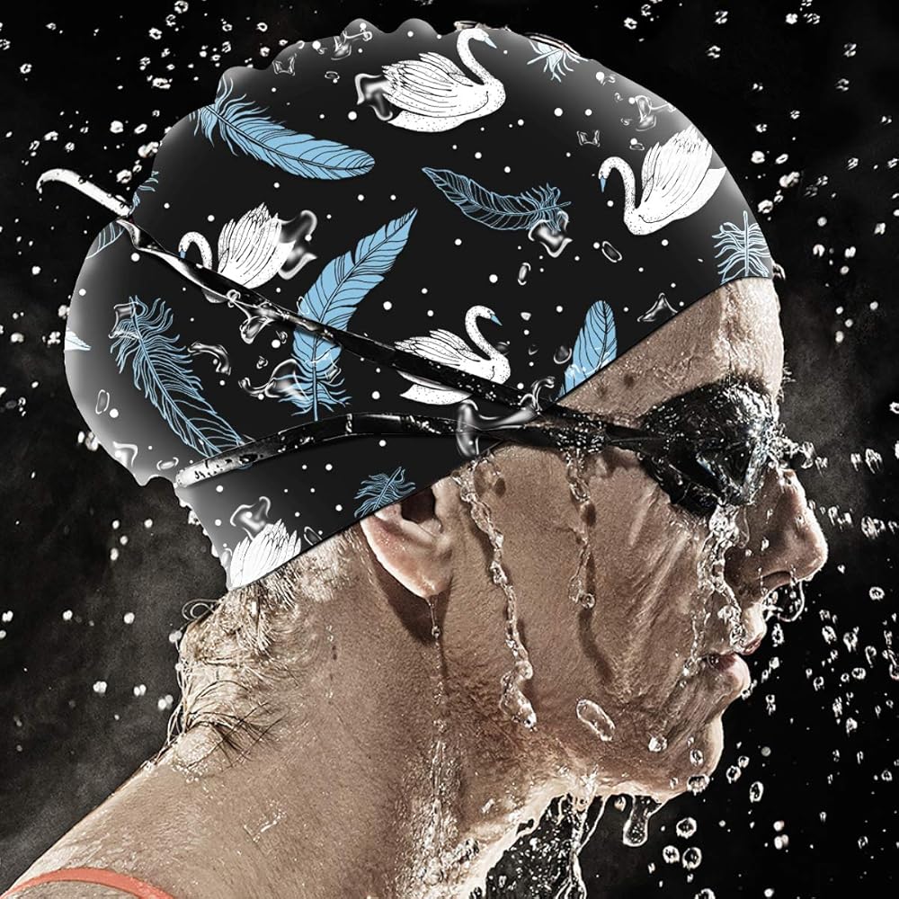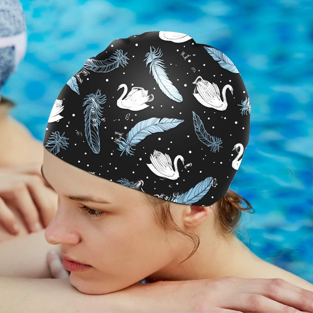 The cute swim cap made of premium PVC-free silicone materials, which is stretchy and durable, non-toxic no odd smell, and no deformation, quick dry and wrinkle-free.