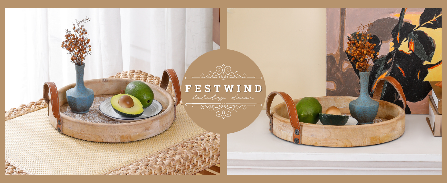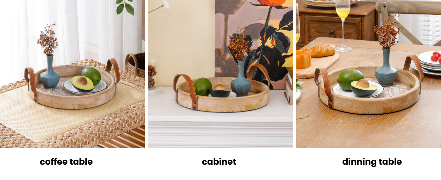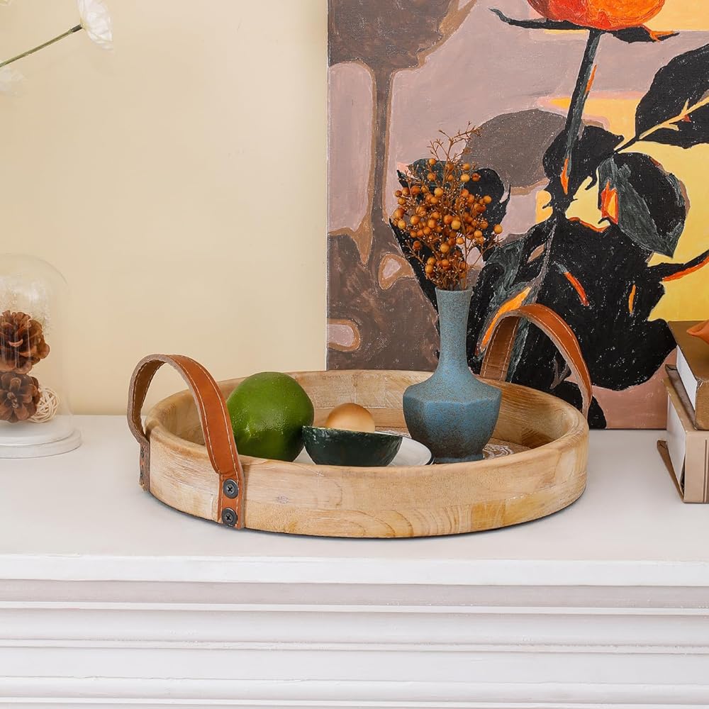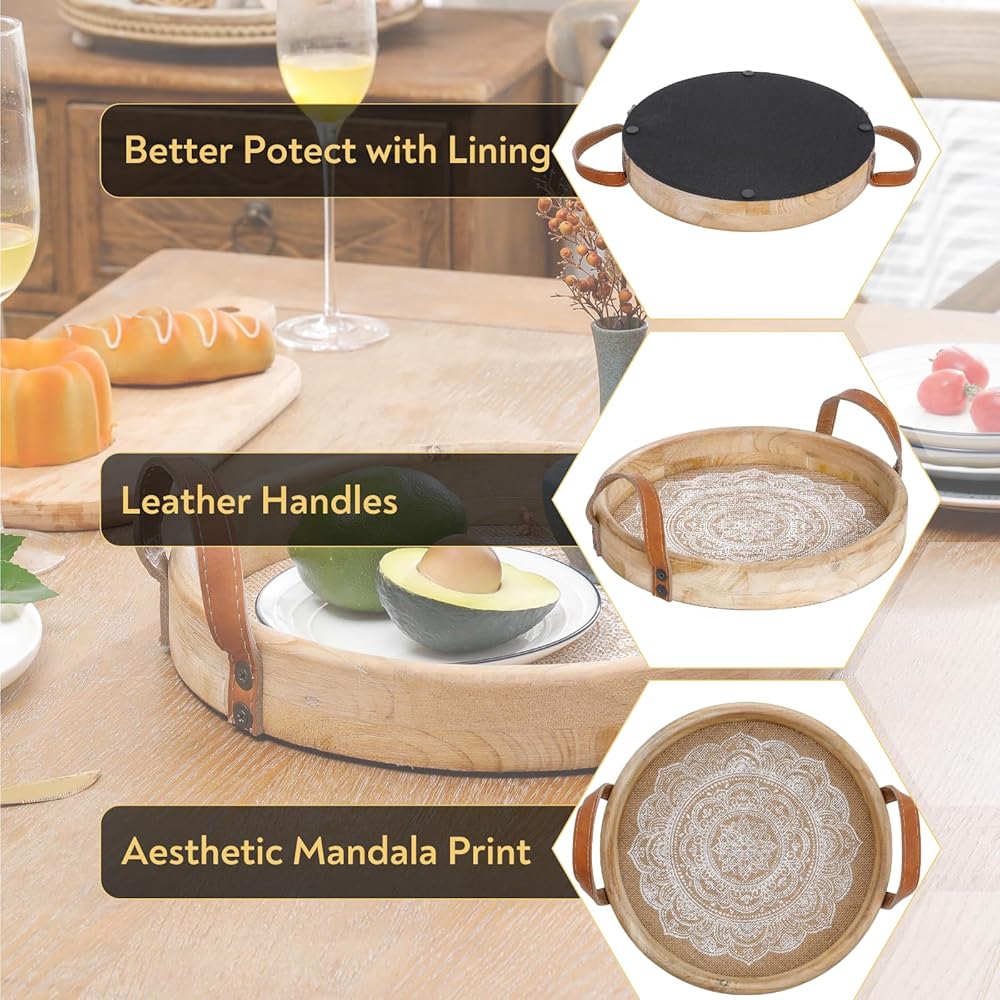 Decorative Versatility: Perfect as a centerpiece on your coffee table, dining table, or console, this round wood tray adds a stylish touch to any room with its bohemian charm.
