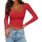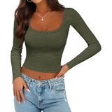 Versatile Style- This long sleeve square neck basic shirt is a must-have for spring, fall and winter, perfect wear with cargo pants, shorts, jeans, skirt,cardigan, hoodie, sweater and jacket for a fashion y2k look. In addition, this long sleeve shirts for women is perfect for both indoor and outdoor wear, making it a unique choice for your wardrobe.