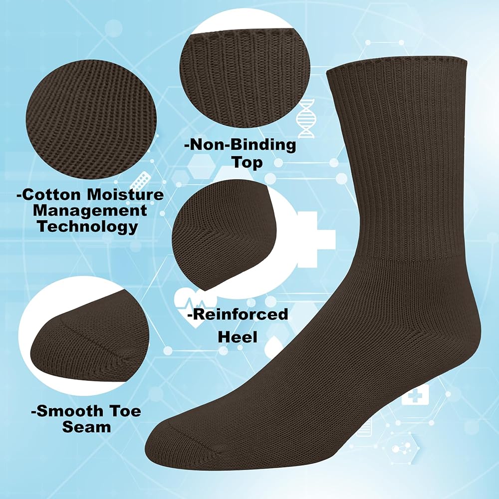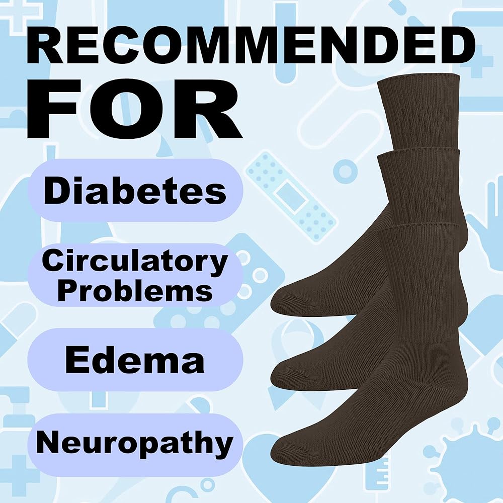 EMEM Apparel Women's Diabetic Non-Binding Crew Socks 3-Pack