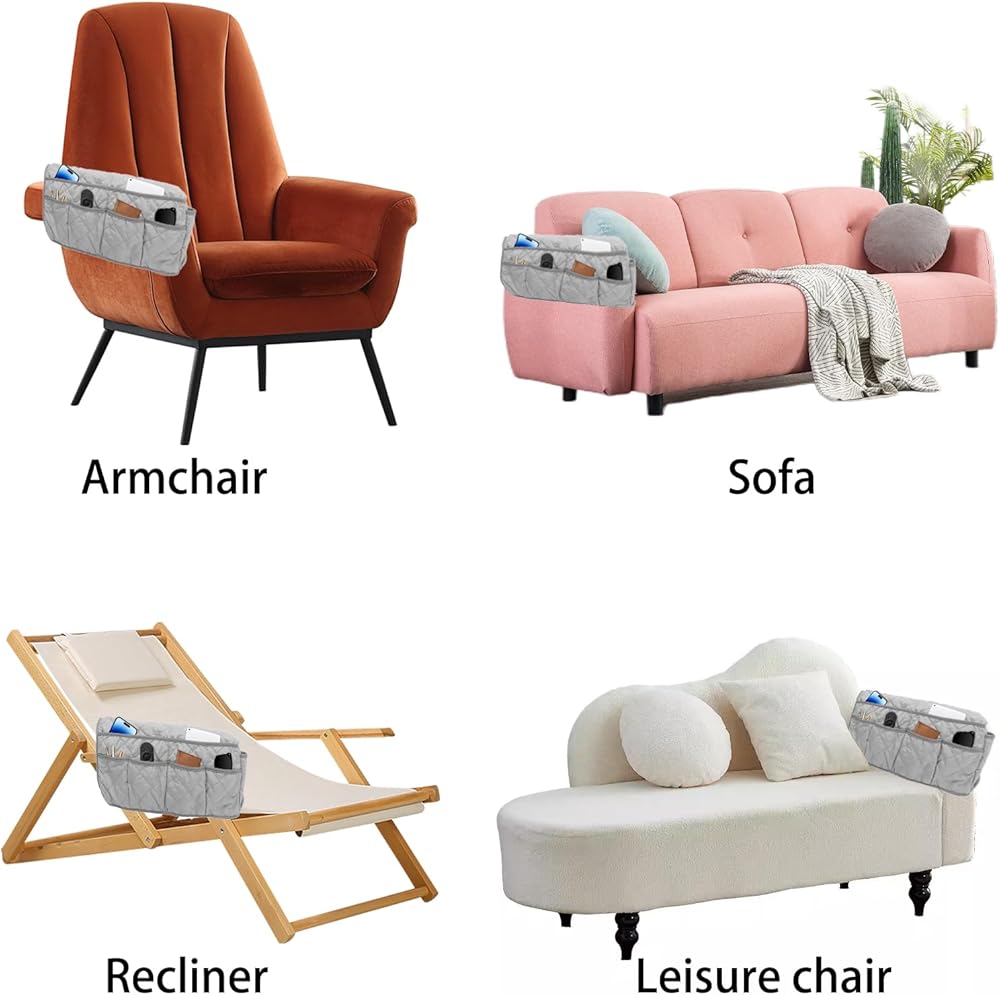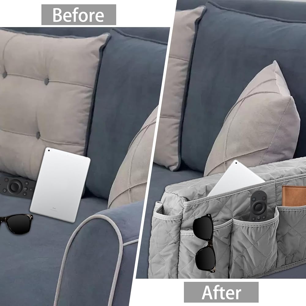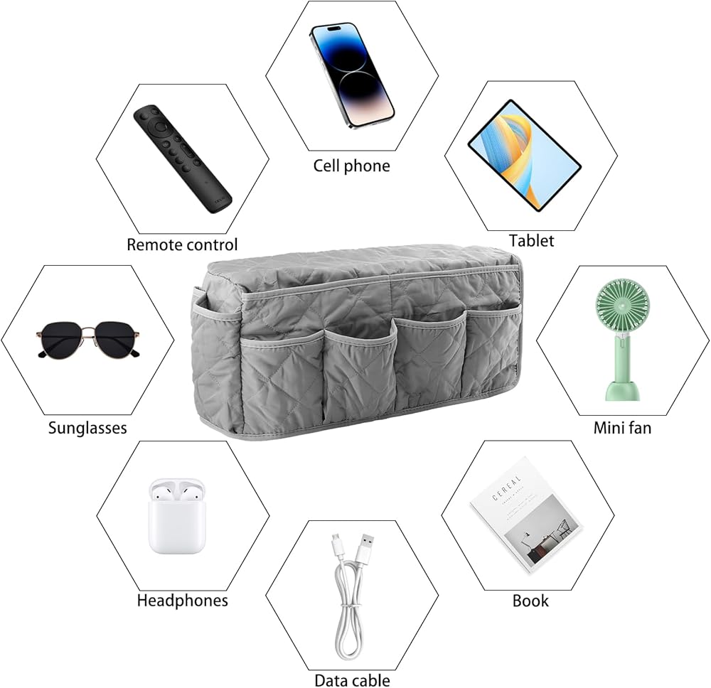 Sofa Armrest Organizer: Couch caddy with 14 pockets, different sizes in these pockets, you can quickly and easily put the things you need, great for storing your favorite books, newspapers or magazines, remote control, cell phone, iPad etc.Make your room look better, and let life easier