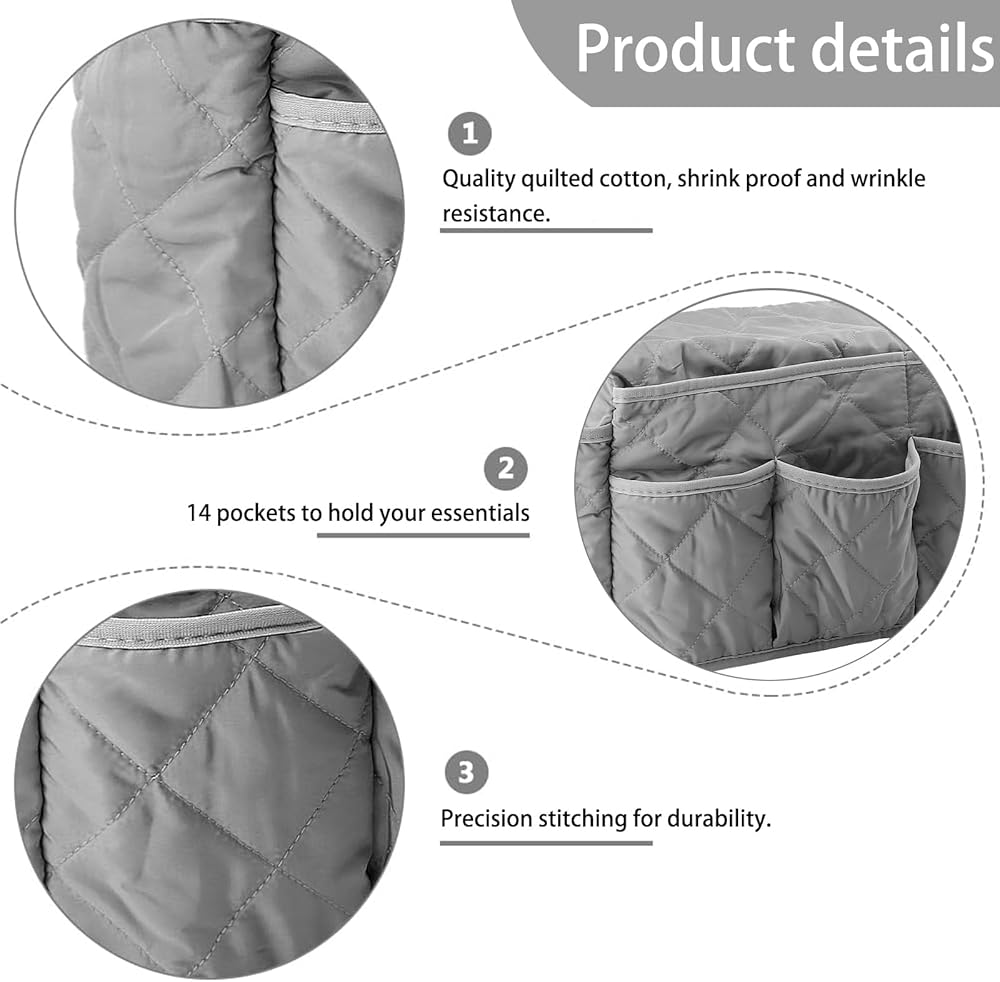Quilted Cotton Sofa Caddy: Armrest organizer is made of cotton, which is very soft, breathable and comfortable to use. The delicate stitching and the double wrapping, which makes armchair organizer extremely strong and durable, shrink proof and wrinkle resistance.(!Note: Please do not put anything too sharp)