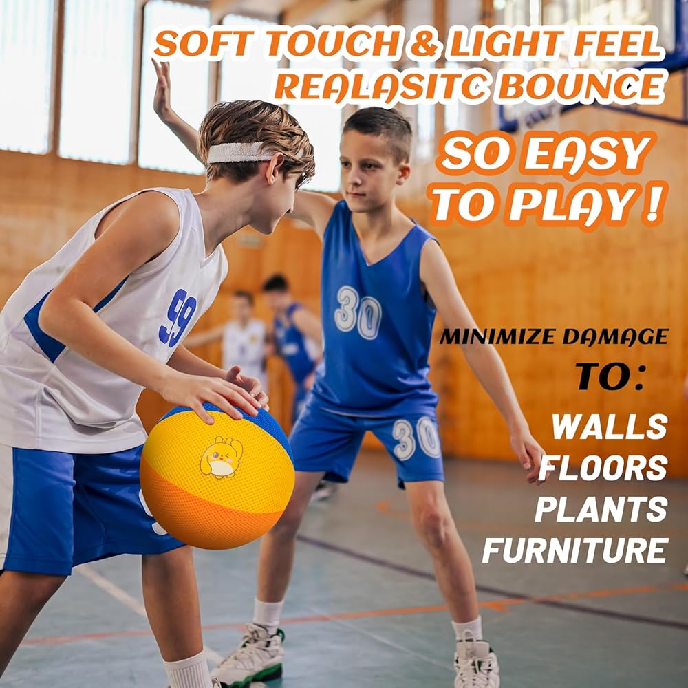 【Impact-resistant Design and Lightweight】 Our Silent Basketball is solid and doesn't have a skin coating. It can withstand strong pressure and quickly bounce back, thanks to its impact-resistant design. The tactile surface provides an easy grip. Moreover, its slightly lighter weight compared to conventional basketballs ensures your furniture remains unharmed throughout practice sessions.Enjoy hours of safe and enjoyable gameplay with our lightweight, silent basketball. Recommended age 3+