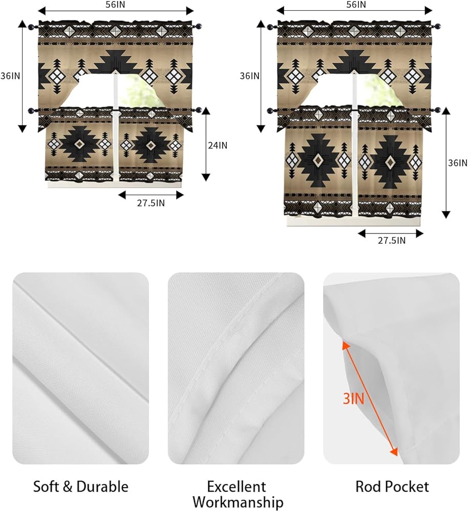 • ✅3-Pcs Window Curtain Set: 1 x valance 56"x36"(18"valance, 18" swag, total height is 36") and 2 x tiers (1 pc size: 24"H x 27.5" W, 2 pcs size: 24''H x 55'')W. Easy-to-install swag and tiers set are 3-in rod pocket, fit a lot of different curtain rods for hanging. Unlike other integrated valance curtain, we can hang swag valances for windows as a complete set or hang it as a separate valance or 2 tiers on a small window and door, allowing you to use panel curtains flexibly to meet your needs.