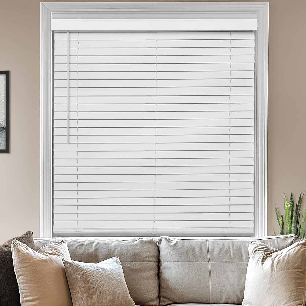 CHICOLOGY Faux Wood Blinds , Window Blinds , Wood Blinds , Window Shades , Window Treatments , Blinds & Shades , Window Shades For Home , Wooden Blinds , Basic White, 36"W X 72"H