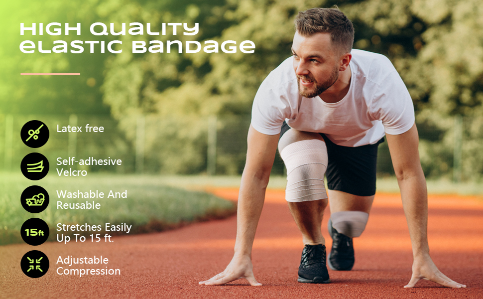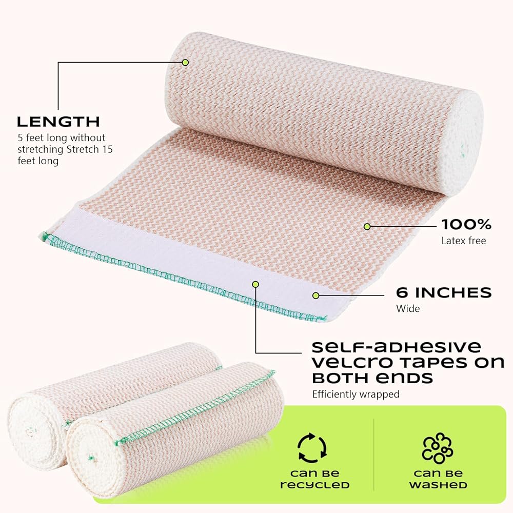 【2 rolls of bandages】The product contains 2 rolls of 6-inch elastic bandages that can be applied to multiple parts of the body at the same time. Each roll is individually packaged to keep the product clean and hygienic. It can be reused, and the bandage can be put in the washing machine after cleaning and drying can continue to use.