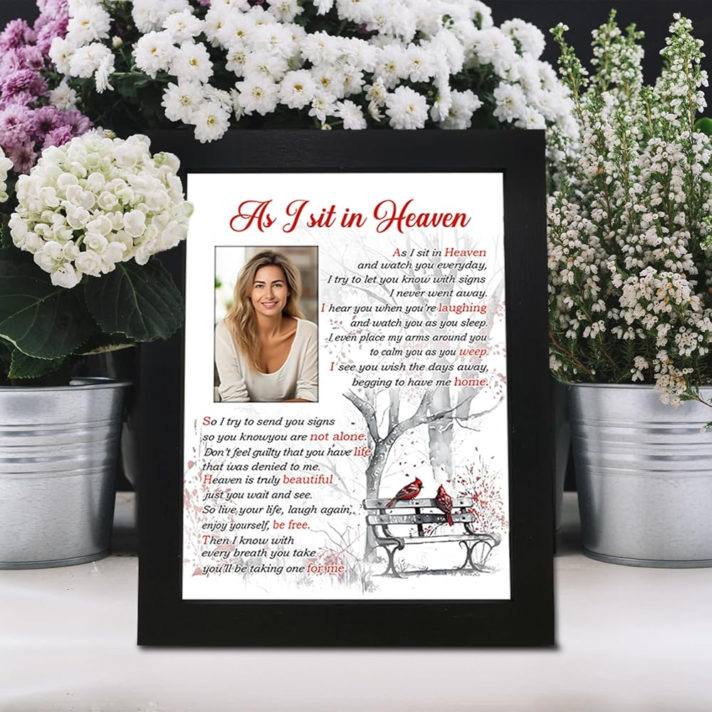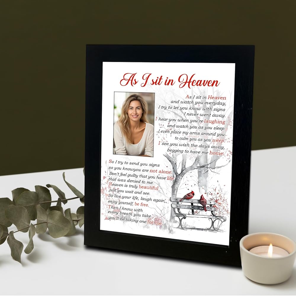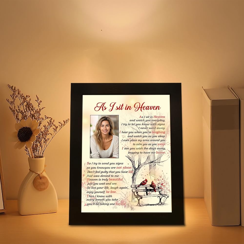 Memorial Shadow Box Frame 8x10 with LED Lights - As I Sit in Heaven, Sympathy Gift for Loss of Loved One Fits 2x3 Photo, in Loving Memory Keepsake for Dad, Mom, or Friend