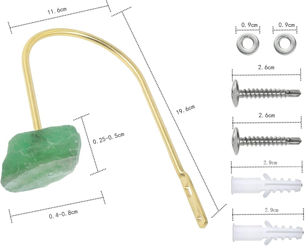 Size Details: The U-shaped hook is 7.72" long, 4.57" wide, 0.24" thick, the long hole is 0.43" long, 0.2" wide, and the round hole is 0.2"; the rough stone is 1.57"-3.15" long, 1.18"-2.36" wide, 0.98"-1.97" thick, and the hole is 0.2". Each hook is equipped with 1.02" long screws, 2pcs. The expansion glue is 1.14" long, the inner diameter of the hole is 0.16"; the diameter of the gasket is 0.35", and the hole is 0.16". The weight is about 440g/set.