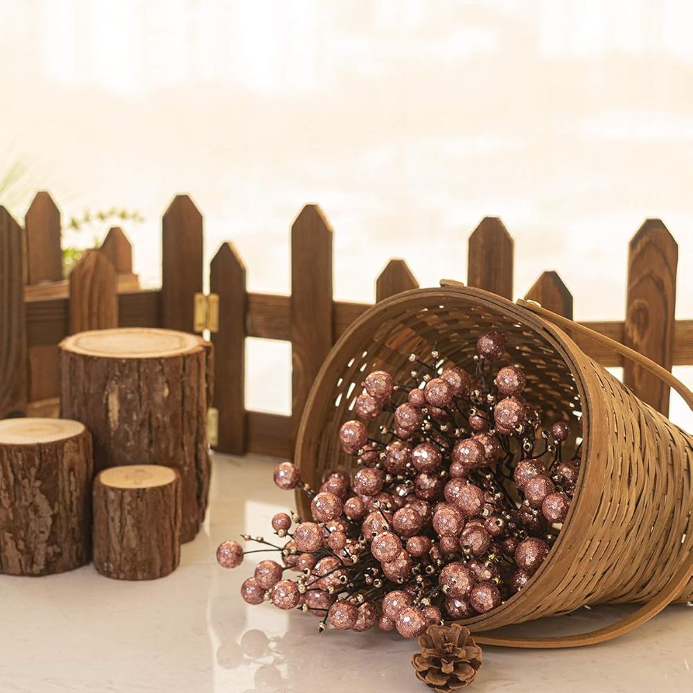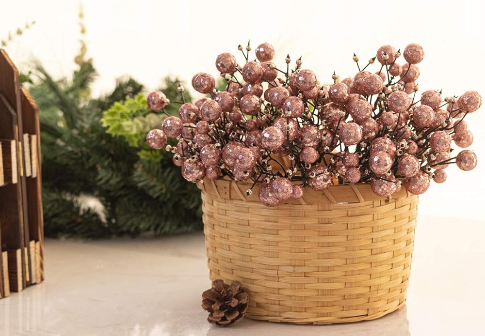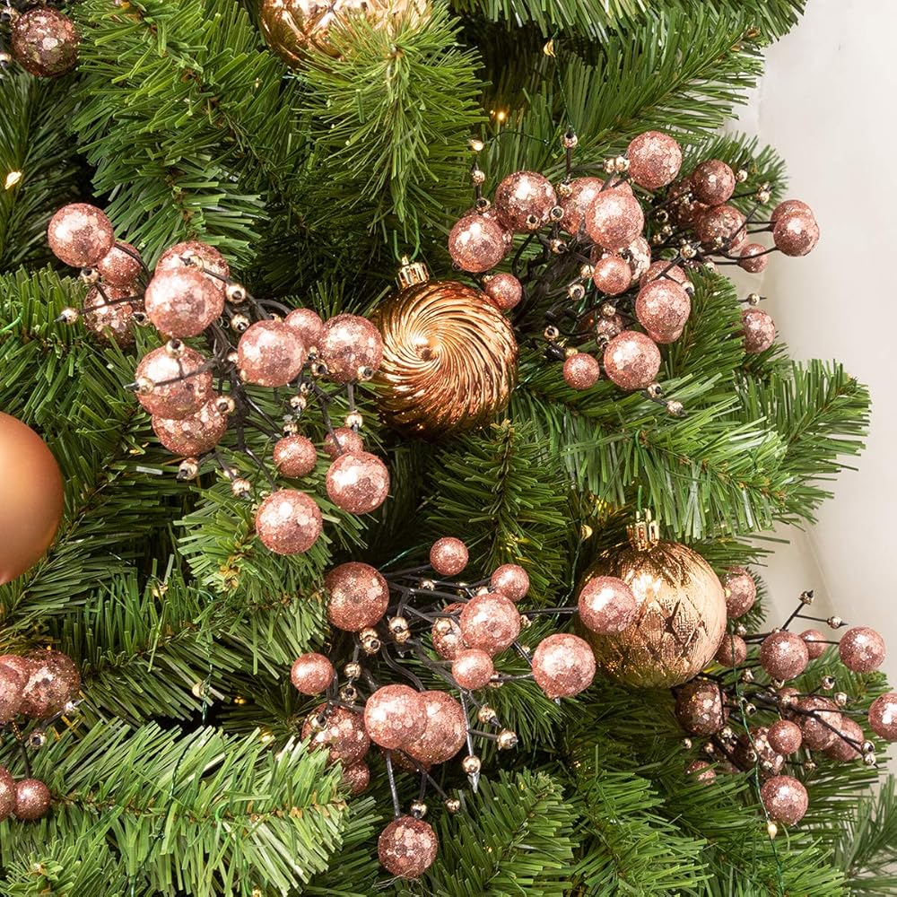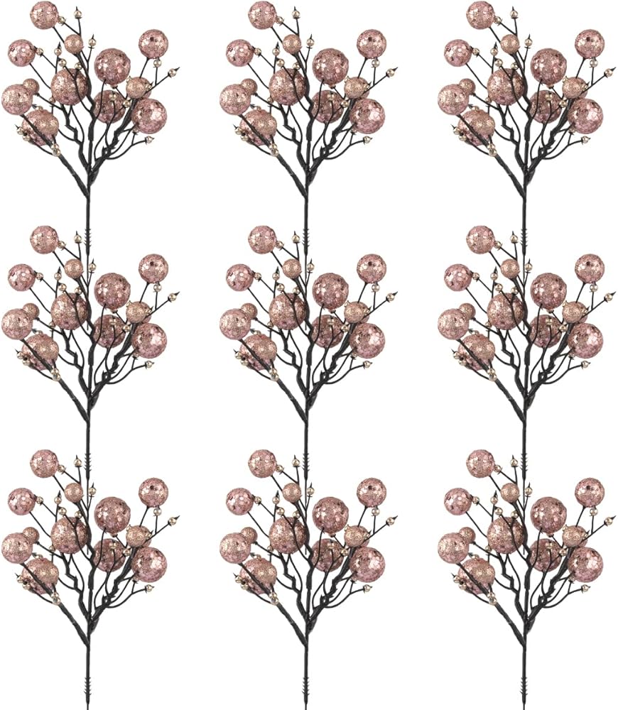 KI Store Rose Gold Christmas Tree Picks Stems Pack of 9 Artificial Glittered Berry Stems Rose Gold Tree Ornaments Decoration for Xmas Tree Halloween Wreath Garland Handcraft