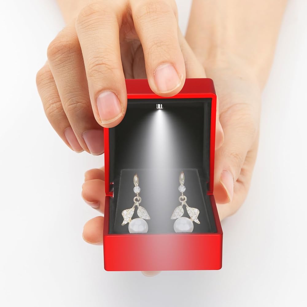 Perfect for HIGH END diamond studs, hoops and dangle earring jewelry. Package includes: 1 piece earring box with LED light; Notice: jewelry not included