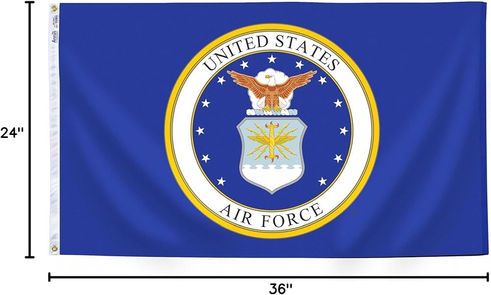 The United States Air Force came into existence in 1947. The distinctive color (flag) of the Air Force was established in 1951. The flag background is a special shade known as “Air Force blue.” The central shield has a stylized thunderbolt symbol of the kind used in the Roman Empire. The blue shield appears over stylized white clouds known in heraldry as nebuly. The ring of 13 stars refers to the original states of the nation. A bald eagle, the national bird, stands at the top with its wings spread. Behind its head is an area of clouds similar to those appearing in the coat of arms of the United States. Annin Flagmakers takes special pride in producing high-quality American-made state, international, and military flags. All Annin Flagmakers flags are sewn in either South Boston, VA or Coshocton, OH. Our superior quality is time-tested and meets the requirements of the most discerning buyer. Nyl-Glo, Tough-Tex, and Bulldog are registered trademarks manufactured exclusively by Annin Flagmakers.