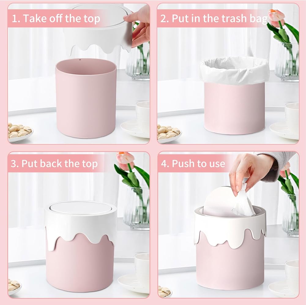Versatile Usage - This compact and elegant trash bin can seamlessly fit on most office desktops, countertops, and tables, making it an ideal addition to offices, bedrooms, living rooms, and kitchens.