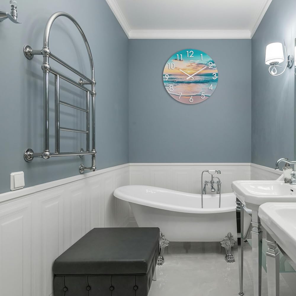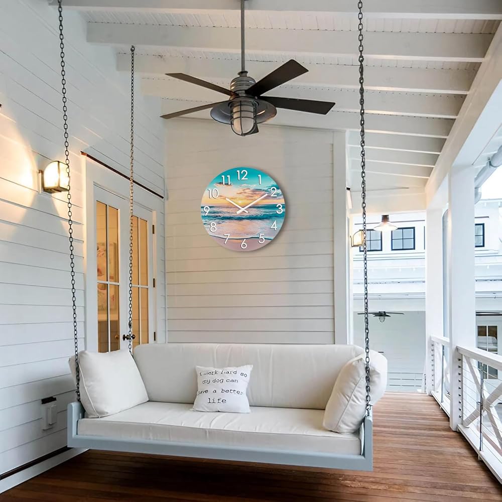 MULTIPLE OCCASIONS - Good looking and practical! The indoor outdoor wall clock features an ocean coastal beach seashell themed.The blue rustic wall clock can be hung indoors or outside. Elevate your living room, kitchen,bathroom,bedroom,home farmhouse with confidence. Also excellent for your patio,pool,porch,yard,backyard and more.