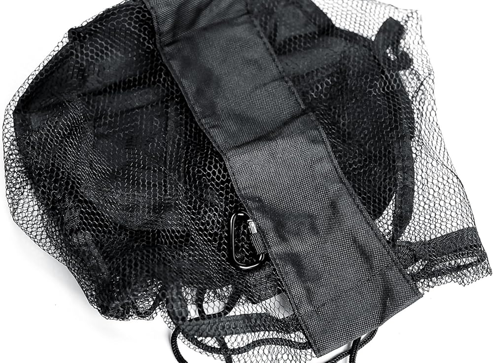QUALITY MATERIAL: Mainly made of soft, tough, washable and lightweight high quality breathable mesh fabric. Comes with a metal hanging clip for easy and convenient hanging to your backpack or sport bag. Each pack included 1 Pc mesh bag + 1 Pc carabiner clip.