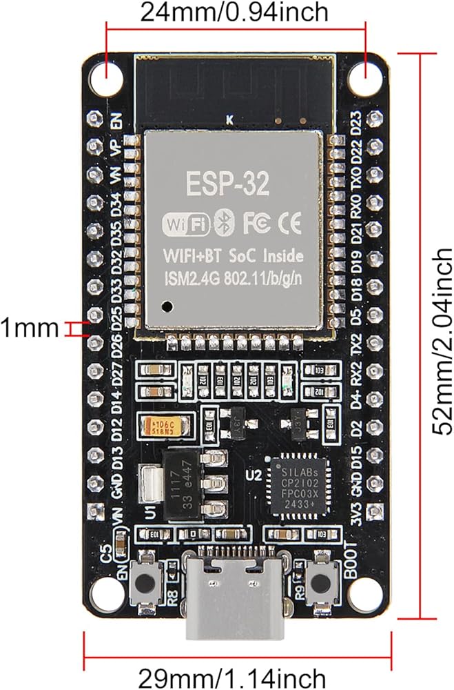 The ESP32 integrated with Antenna switches, RF Balun, power amplifiers, low-noise amplifiers, filters, and management modules, and the entire solution occupies the least area of PCB. 2.4 GHz Wi-Fi plus Bluetooth dual-mode chip, with TSMC Ultra-low power consumption 40nm technology, power dissipation performance and RF performance is the best, safe and reliable, easy to extend to a variety of applications.