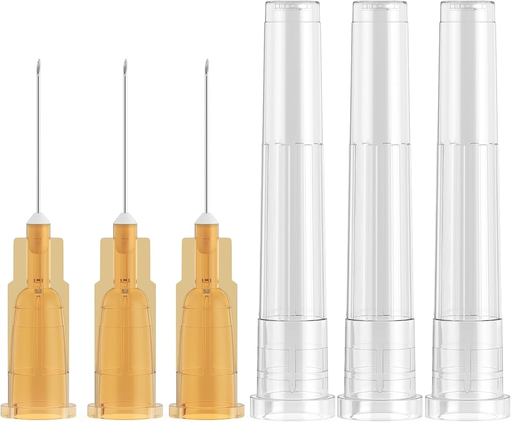 [Product Specifications]: Each 23G needle measures 5/8 inch (16mm) in length. The box includes 100 individually packaged, sterile needles with caps.