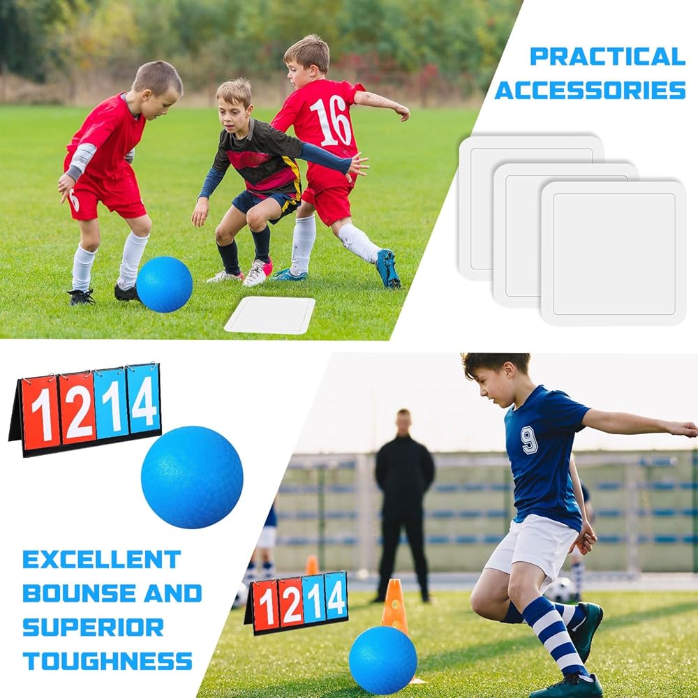Huaerle 18 Pcs Sports Kickball Set Includes 2 Playground Ball with Air Pump 4 Rubber Throw Down Bases 10 Foul Line Cones and a Flip Scoreboard for Boys Girls Adults Playground School Backyard