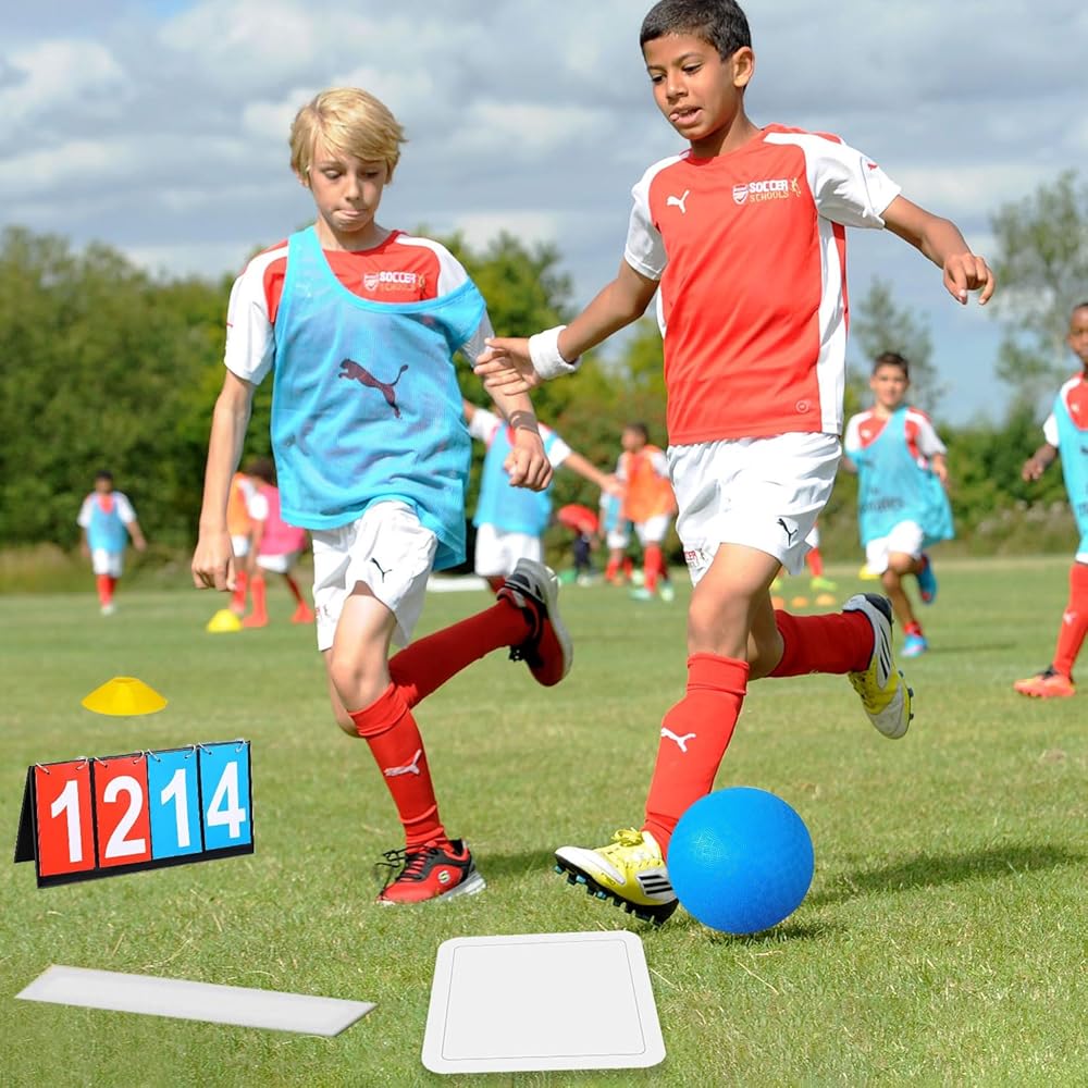PRACTICAL ACCESSORIES: For our scoreboard, it's convenient as a reminder of sports game process and easily keep track of the game's progress with white numbers against the blue and red background can be more obvious to audience. And we can apply the air pump to keep the ball in the ideal shape.