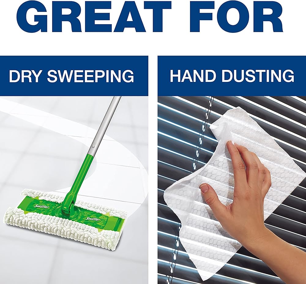 Using thick dirt-grabbing ridges and grooves, swiffer professional's powerful dry sweeping disposable dust cloths leave your floors cleaner than sweeping with a broom does, even on textured surfaces. That's because it easily conforms to the surface of your floors and grout lines, picking up more dirt, dust and hair than a broom does. Use swiffer dry cloth refills on floors and hard-to-reach places above the floor. These swiffer pad refills leave no residue and are safe for wood floors, ceramic and vinyl Tile, electronics, and other hard surfaces.