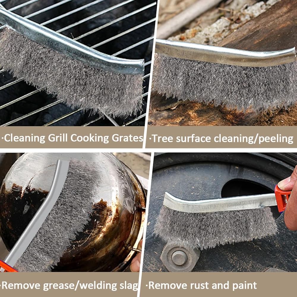【Multi Application】: Remove rust and paint quickly with this Stainless Steel Scratch Brushes, Wire brushes are ideal for Cleaning Grill Cooking Grates ,removing paint stains, welding slag,solder,rust, equipment, machinery and other surfaces.