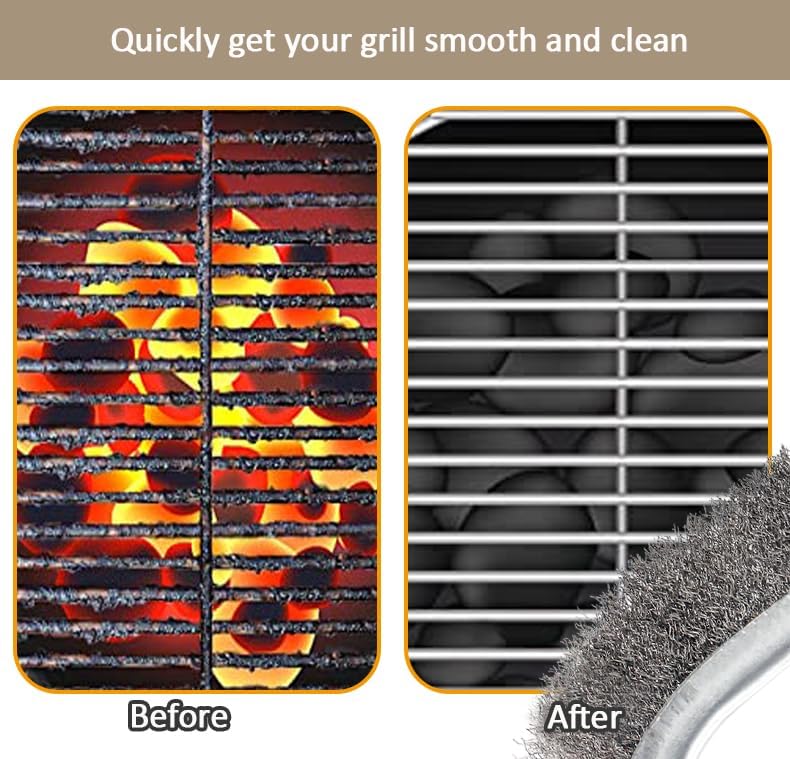 【Sturdy&Durable】:Our steel bristle wire brush set consists of steel bristles and plastic handle. our grill brush has more bristles and thicker bristles, improve work efficiency when cleaning.can last for years, never deformation or split after frequent usage.