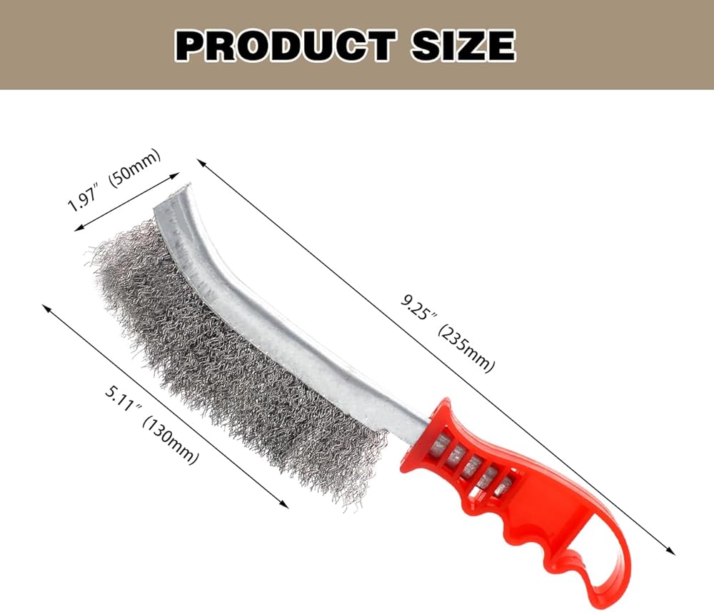 【Wire Brush Size】: The total length:245mm/ 9.65"; brush handle length :105mm/ 4.13"; wire bristle head length : 130mm/ 5.11"; width: 50mm/1.96".