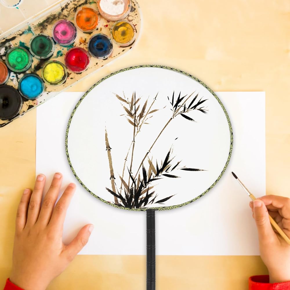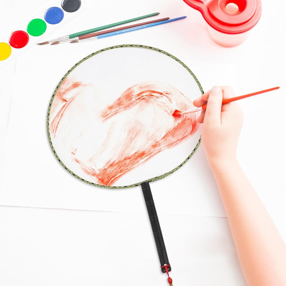 Alipis DIY Painting Fan Set 10 Pcs Blank Round Handheld Cloth Fans 12X8 Inch Kids Art Material for Creative Drawing Home School Kindergarten