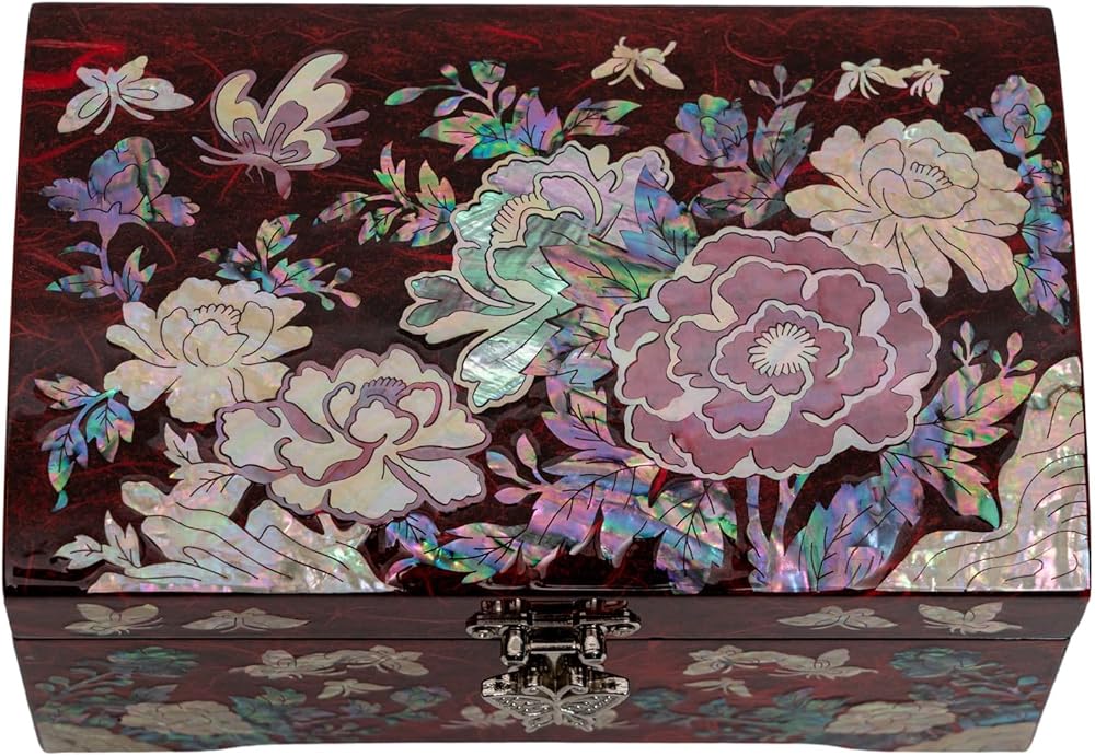 Seashell inlaid mother of pearl - This wooden jewelry box is 100% handmade. It is handcrafted by the Certified Korean Cultural Properties Craftsman, and each product goes through a special screening process as well as strict quality verification to bring you nothing but the very best. It is a great Korean artwork that you can keep for a lifetime.